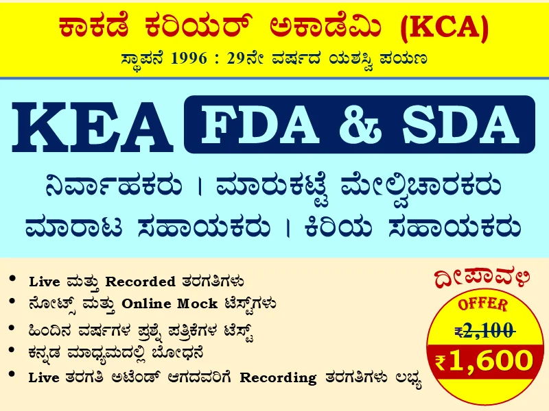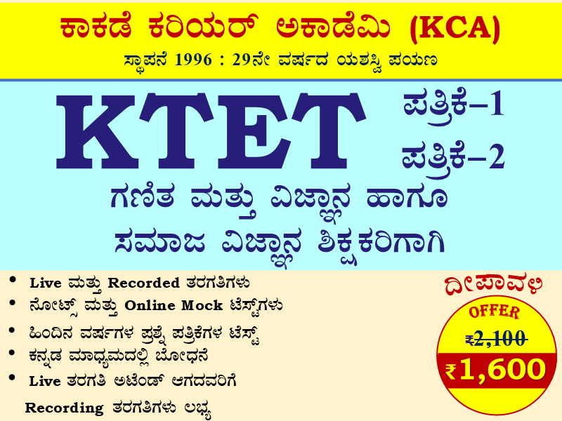 ಕಡ್ಡಾಯ ಕನ್ನಡ, ಪತ್ರಿಕೆ-1 ಮತ್ತು ಪತ್ರಿಕೆ-2 ಸೇರಿ ಒಟ್ಟು ಶುಲ್ಕ ರೂ. 700=00 ಮಾತ್ರ. ಕಡಿಮೆ ಶುಲ್ಕದಲ್ಲಿ 28 ವರ್ಷಗಳ ಅನುಭವವನ್ನು ಪಡೆಯಿರಿ ಹಾಗೂ ಪರೀಕ್ಷೆಯಲ್ಲಿ ಯಶಸ್ಸು ಗಳಿಸಿ.