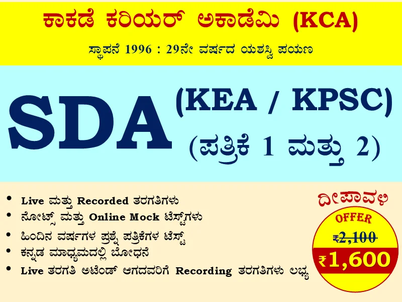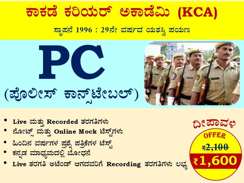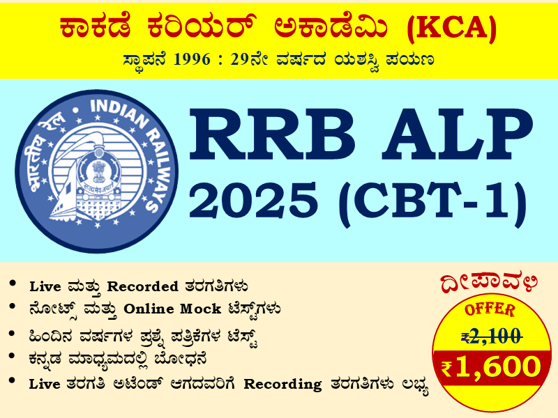 ಕರ್ನಾಟಕದಲ್ಲಿ ಅತ್ಯಂತ ಹಳೆಯ ಮತ್ತು ಅನುಭವಿ ಸ್ಪರ್ಧಾತ್ಮಕ ಪರೀಕ್ಷಾ ತರಬೇತಿ ಕೇಂದ್ರಗಳಲ್ಲಿ ಕಾಕಡೆ ಕರಿಯರ ಅಕಾಡೆಮಿ ಒಂದಾಗಿದ್ದು ಕಾಕಡೆ ಕರಿಯರ್ ಅಕಾಡೆಮಿಯಲ್ಲಿ ಸ್ಪರ್ಧಾತ್ಮಕ ಪರೀಕ್ಷೆಗಳಿಗೆ Online ಮತ್ತು Classroom ತರಬೇತಿಯು ದೊರೆಯುತ್ತದೆ